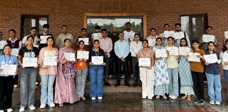 Jammu, August 20: The Jammu and Kashmir Entrepreneurship Development Institute (JKEDI) felicitated 190 students from various colleges of Jammu Division with internship certificates at its Regional Campus here at Bari Brahmana on Wednesday.The certificates were awarded by the Joint Director, JKEDI, Sh. Chand Kishor Sharma (JKAS) during a simple but impressive function, for completion of the summer internship by these students at JKEDI. Students who underwent their 10-day (60 hours) Summer Internship at the Bari-Brahmana campus of the institute as per the New Education Policy (NEP) 2020, expressed gratitude for the exclusive mentorship and guidance. As per NEP 2020, all undergraduate students have to complete 60 hours of internship program for completion of their degree program. Speaking on the occasion, Joint Director JKEDI congratulated the interns and stressed on the importance of entrepreneurship and innovation in today’s competitive environment. He also took feedback from the outgoing interns in order to provide a more inclusive internship to the future batches.The internship programs at JKEDI are being conducted by a team of expert faculty of the JKEDI under the overall supervision of Director JKEDI.Meanwhile, a fresh batch of 76 students from Government Sri Pratap Memorial Rajput College (SPMR) completed their summer internship program at JKEDI Baribrahmana campus. During the program, the students were introduced to the role and functioning of the JKEDI. They gained exposure to the program verticals of the institute, all aimed at promoting entrepreneurship as a viable career choice in the UT of Jammu & Kashmir.Various sessions related to core principles of entrepreneurship, decision making, time management and leadership were held for the interns wherein real-time exposure to running a successful business venture was provided to them. These activities helped the interns to gain insight with respect to the various challenges faced by an entrepreneur and the ways to overcome them.Jammu and Kashmir Entrepreneurship Development Institute (JKEDI) is dedicated to foster entrepreneurship and self-employment in the region through training, research, and development activiti